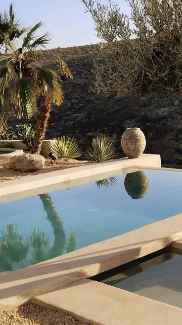 The hotel is the vision of Anthony Picq, who, having spent 25 years in the sustainable tourism sector, flitting between Tenerife and Barcelona, opened EcoHotel El Agua in September 2022. A former athlete-turned-ecological-farmer-turned-holistic-health-hotelier, it’s fair to say that Picq practices what he preaches. A trained hygienist and naturopath (someone who can advise on natural therapies, like herbal medicine, acupuncture and homeopathy, in case you didn’t know), as well as a learned phytotherapist (someone that aims to improve your health through plants and herbs), many of the treatments – and much of the menu – at El Agua are the invention of Picq. Get him started on any number of wellbeing subjects – from ecology, to spirituality, to anthroposophical, to integrative medicine – and prepare yourself to be schooled. Picq’s other passion, as will become blindingly obvious to anyone who visits EcoHotel El Agua, is design. Picq has previously worked as an interior stylist and garden designer.
