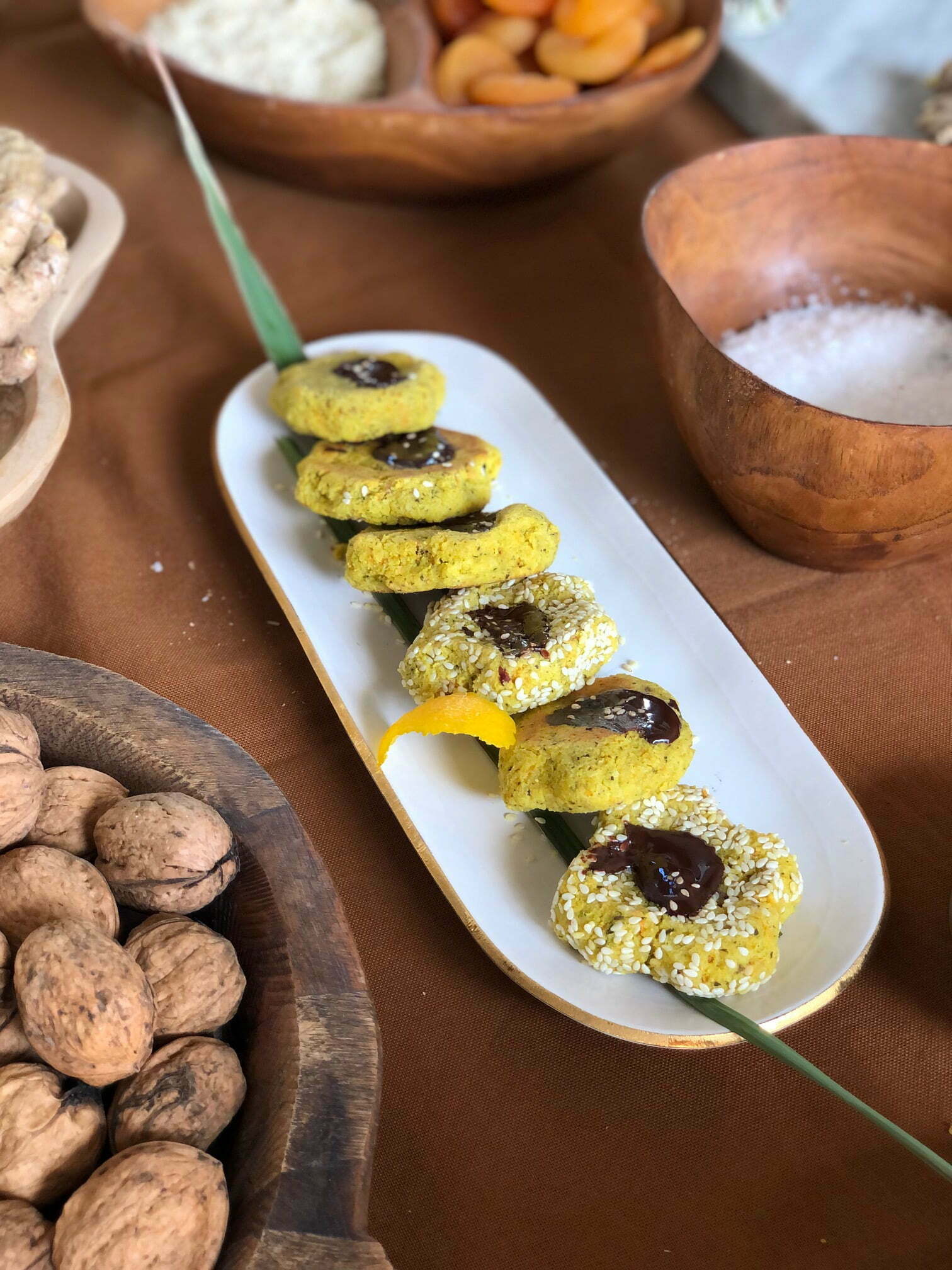 Grate the apple and carrot finely and squeeze their juices between your hands. Reserve the juices for another recipe or drink them. Mix all the dry ingredients in a large bowl. In the blender jar, beat the activated cashews with the salt and sweetener (optional), then add the mango pulp and all the rest. wet ingredients (preserving the carrot and apple) and beat until you get a cream. Mix all the ingredients well until you get a moist and moldable dough. Let the mixture rest for 30 min. Mold (give shape with equal thickness) to your cookies. Grease a baking tray with a little coconut oil or on top of parchment paper. Dehydrate until you get the desired texture. You can do it in your oven with the minimum temperature (or even with the door open), in an electric food dehydrator or in the sun. For more information on dehydration as a living cooking technique (cooking with vitality) leave me a comment here.